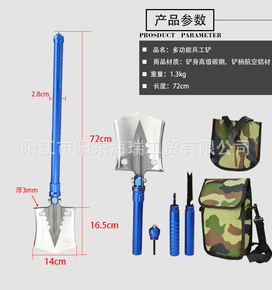 蓝户外铲不锈钢多功能折叠铲钓鱼铲登山铲便携铲子车载...