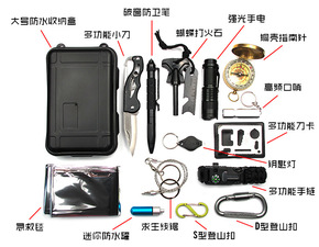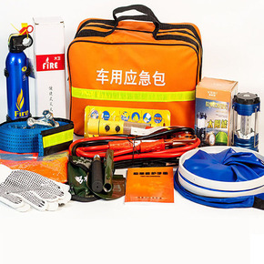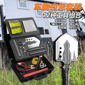户外车载紧急应急包 多功能灭火器拖车绳工兵铲安全...