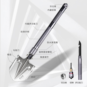 多功能银色户外工兵铲军工铲折叠套装野营求生工具贴牌...