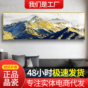 晶瓷画客厅装饰画沙发背景墙山水三联画壁画办公室挂画...