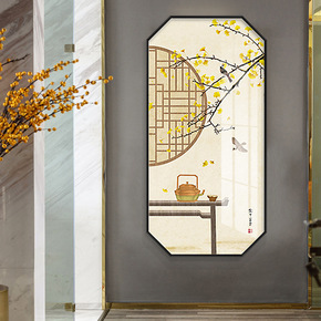 新中式多边形客厅装饰画沙发玄关书房画新中式花鸟山水...