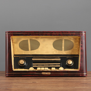 厂家批发复古做旧铁艺收音机录音机摆件模型民国家居咖...