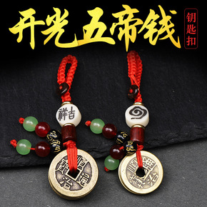 五帝钱钥匙扣 纯铜真品铜钱聚财随身携带挂件...