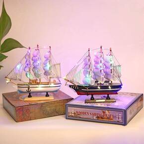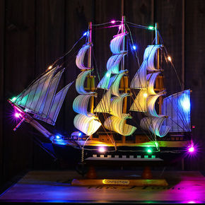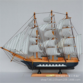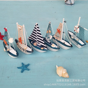 地中海木质手工艺品一帆风顺小帆船模型摆件纯手工道具...