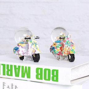 定制水晶电动车房屋小电驴送人家居手办装饰彩绘摆件...
