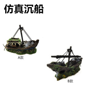 水族造景鱼缸装饰工艺品摆件树脂船海盗船仿真船沉船躲...