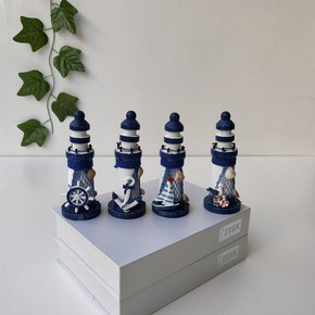 地中海风格木质小灯塔桌面装饰摆件 创意礼品拍摄道具...