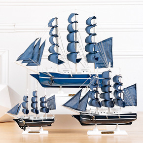 地中海风格木质品帆船模型摆件家居客厅办公室桌面装饰...