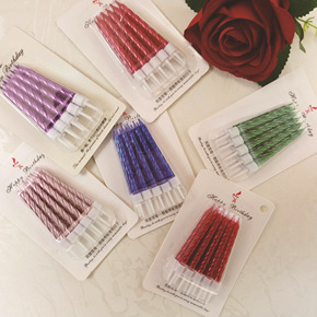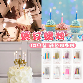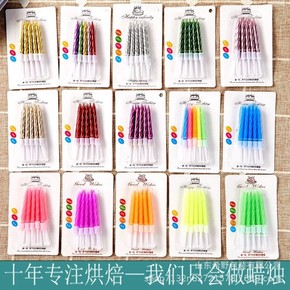 生日蛋糕烛台螺纹小蜡烛 儿童创意派对彩色金色螺纹彩...