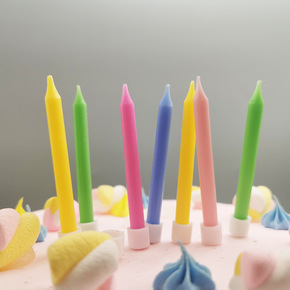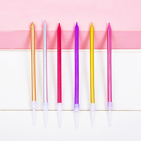 彩色细长光杆烘焙蛋糕装饰生日蜡烛创意马卡龙色光面蜡...