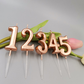 蛋糕装饰生日蜡烛 创意儿童数字0-9蜡烛玫瑰金色银...