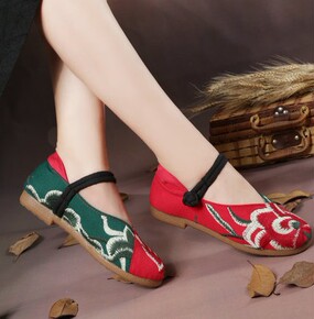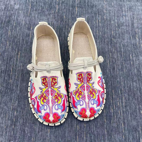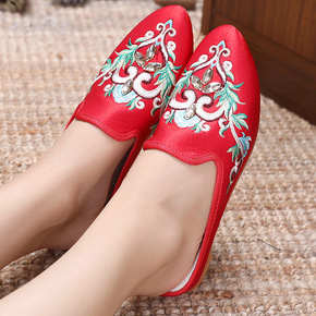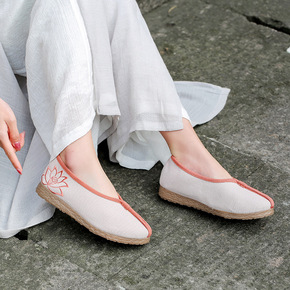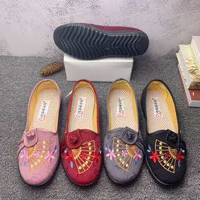 春秋老北京布鞋女汉服平底绣花鞋浅口透气一脚蹬女鞋中...