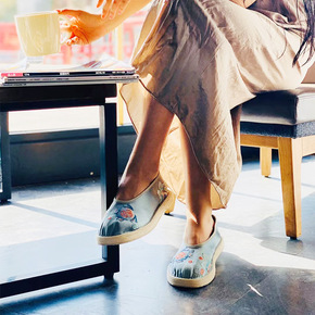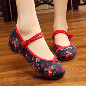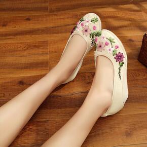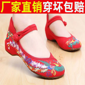 M13#春秋新款中国风坡跟布鞋民族风复古绣花鞋旗袍...
