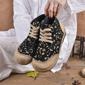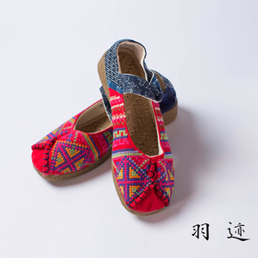 大理老北京中国风民族风亚麻千层底大头一扣绣花鞋文艺...