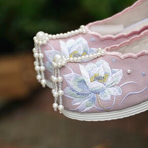 古风翘头弓鞋珍珠汉服鞋子搭配汉服明制古装内增高绣花...
