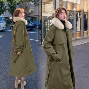 实拍2021年冬季新款韩版中长款过膝工装派克服加绒...