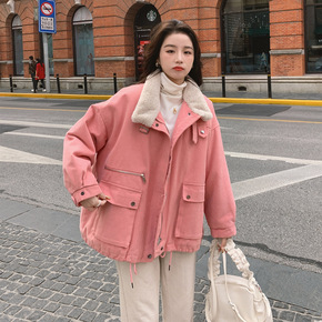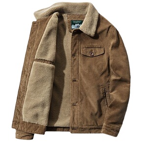 新款灯芯绒棉衣男秋冬加厚工装加绒棉服翻领大码羊羔绒...