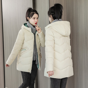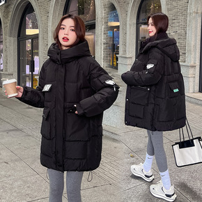 中长款棉衣女2022冬季韩版保暖防寒服时尚连帽羽绒...