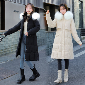 2021冬季棉衣女士韩版收腰中长款加厚羽绒棉服女连...