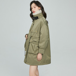 实拍收腰加绒加厚派克服女小个子爆款2021冬工装棉...