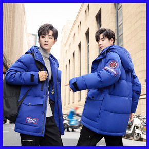 羽绒服男士中长款2021新款冬季加厚学生工装大码过...