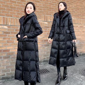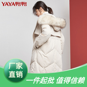 鸭鸭2021年新款大毛领收腰气质羽绒服女长款过膝派...