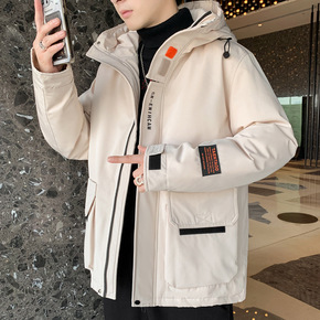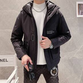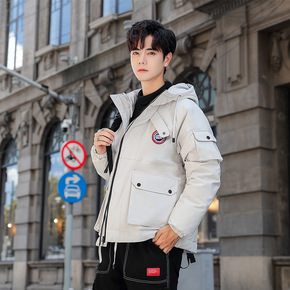 2021冬季男士休闲运动羽绒服青少年时尚潮流连帽白...
