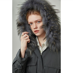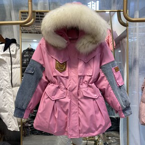 派克工装羽绒服女2021年冬新款中长款大毛领设计感...