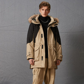 现货羽绒服男中长款新款冬季工装时尚潮牌情侣外套派克...