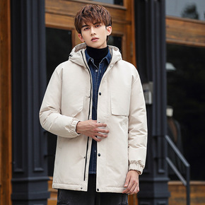 花花羽绒服男中长款连帽2020新款韩版潮流加厚工装...