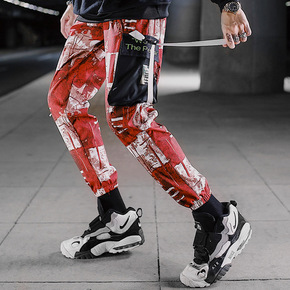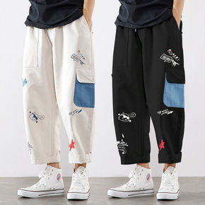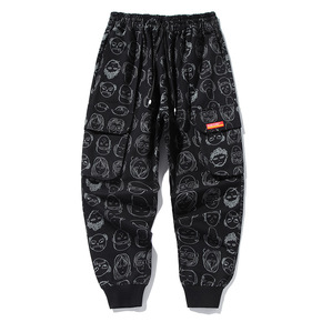 春秋满身头像印花工装裤潮男宽松束腿裤潮牌宽松小脚裤...