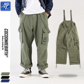 源头厂家潮牌休闲短裤男日系复古直筒吊带五分裤情侣工...