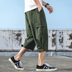 珀斯人亚麻休闲裤日系青年多口袋工装裤大码夏季男士直...