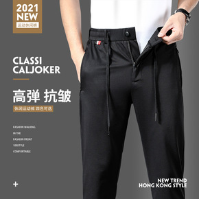 男士休闲裤夏季薄款冰丝裤子男款直筒宽松潮弹力新款裤...