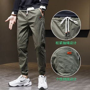 2021春秋季新款束脚工装裤男韩版修身九分休闲裤男...