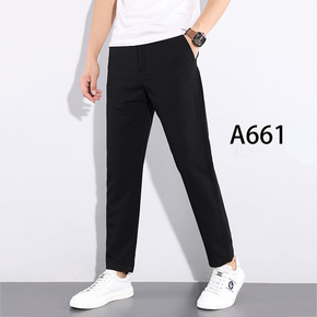 西裤男商务休闲感春秋款修身小脚条纹垂感九分西装裤正...