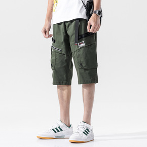 工装短裤男港风chic宽松直筒阔腿七分裤韩版潮流男...