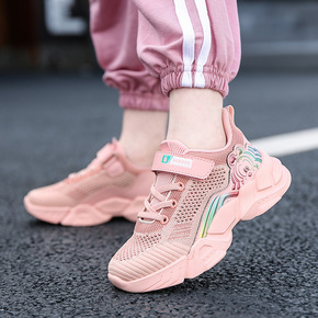 巴布豆童鞋女童运动鞋2021新款春秋网面透气夏季网...