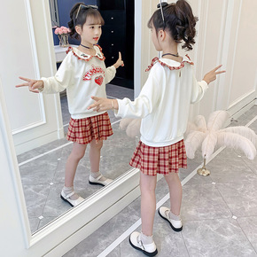 巴拉巴拉女童秋装卫衣裙套装儿童学院风娃娃领洋气长袖...
