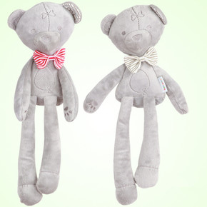 婴儿毛绒公仔蝴蝶结安抚小熊宝宝陪睡玩偶0-3岁幼儿...