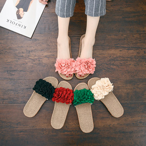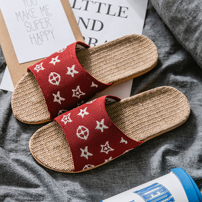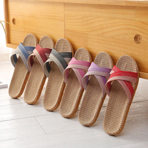 四季家居亚麻拖鞋女居家情侣地板拖鞋男全麻软底拖鞋凉...