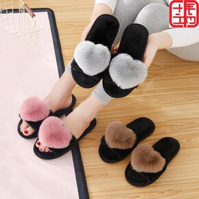 棉拖鞋女冬季2018新款居家室内防滑毛绒一字毛毛拖...