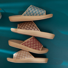 家用夏季草编亚麻藤草男女室内凉拖鞋清凉藤草席家居防...