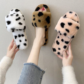 新款厂家现货 卡通可爱毛绒奶牛保暖加厚拖鞋 防滑舒...