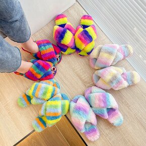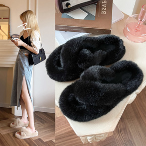 亚马逊wish大码毛毛拖鞋2021年秋冬季时尚居家...