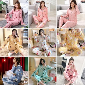 【工厂】IN STOCK双长睡衣女士长袖开衫套装卡...
