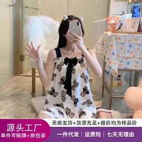 夏季爱卡通吊带睡裙女中长款蝴蝶结甜美家居服...