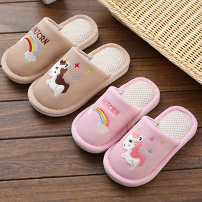 春秋季亚麻棉麻儿童小宝宝幼儿园拖鞋室内居家地板拖防...