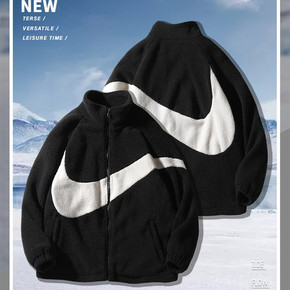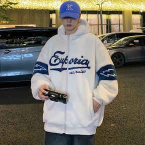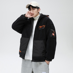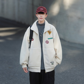NASA联名潮牌羊羔绒外套男颗粒绒加绒外套时尚夹克...