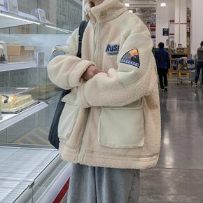 冬季羊羔绒棉衣男外套青年加绒加厚宽松棉袄韩版潮流男...